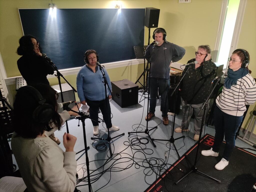 Le projet Hôpital de Jour, c’est une dizaine de patient.e.s de l’Hôpital de jour de Tulle qui participent à des ateliers hebdomadaires. Il s’agit de 10 séances, des temps d’écriture et d’enregistrement. Cette année, les participant.e.s ont composés un texte et l’ont mis en chant accompagné.e.s par l’artiste, Marion Neira.